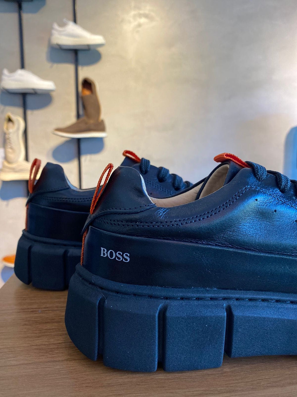 Tênis elegantes criados na Itália pela BOSS. Estampado com um logotipo da BOSS, em couro liso com polimento finalizado à mão. Para nossos produtos responsáveis, sempre usamos pelo menos 60% mais matérias-primas sustentáveis. Um mínimo de 60% do couro usado para fazer este produto foi proveniente de curtumes certificados usando métodos de baixo impacto, para um impacto reduzido no meio ambiente. Ao comprar este produto, você está apoiando a fabricação de couro responsável através do Leather Working Group (LWG). Usamos apenas peles e couros que são subprodutos da indústria de alimentos.